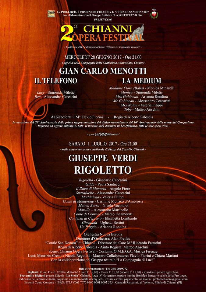 Il manifesto delle opere del Chianni Opera Festival 2017
