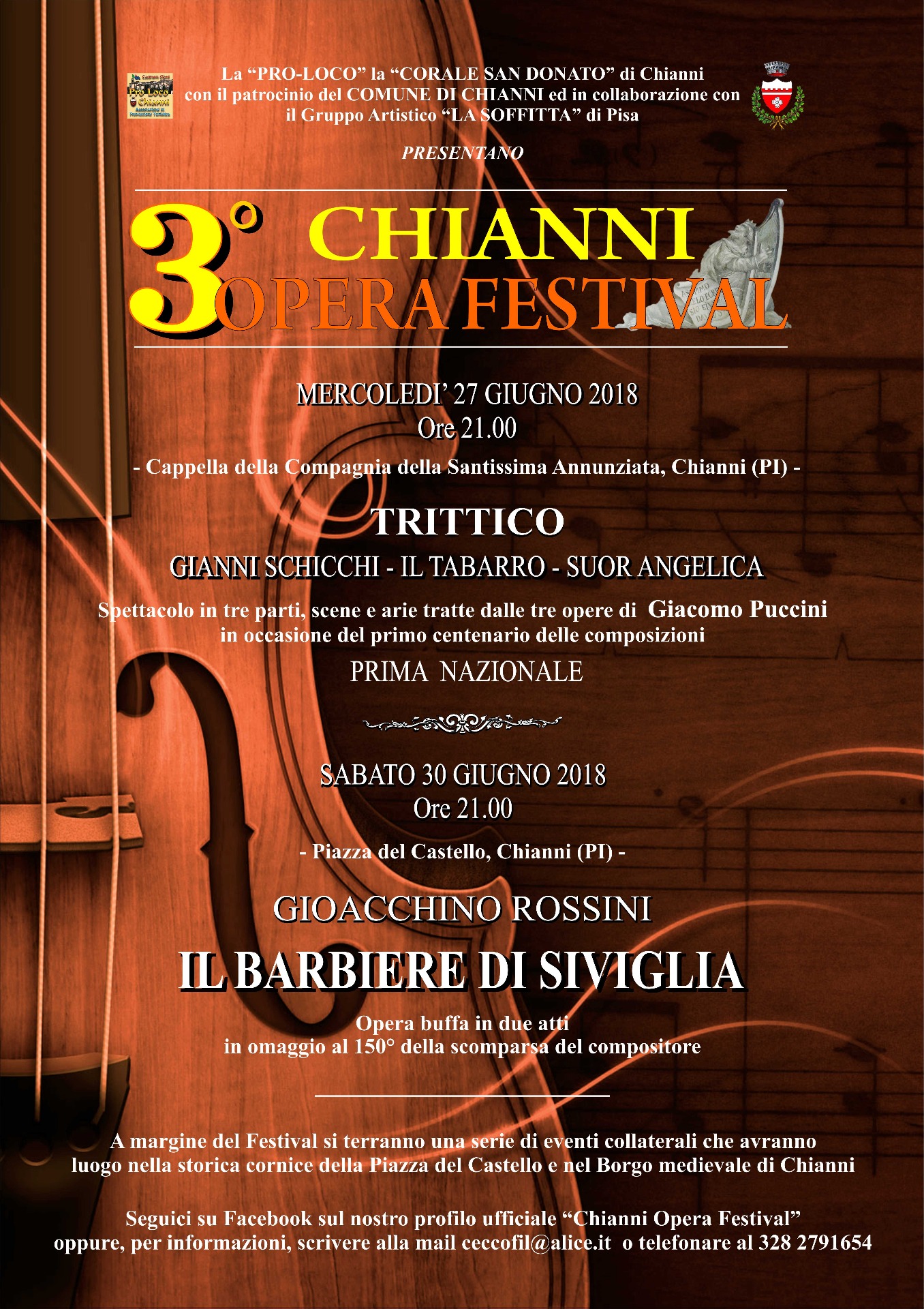 Ci pregiamo comunicare i titoli della 3^ edizione del Chianni Opera Festival.